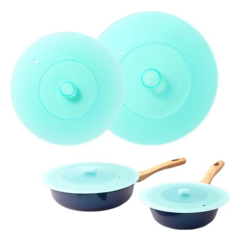 - Suitable for various sizes Set of 2 pieces, large and small, compatible with frying pans and pots of 20 to 28 cm.You can use it according to the tools you have.It can also be hung and stored using hooks, etc., and has a simple and clean design.Since the lid is made of soft silicone, it is easy to handle and does not make any clicking noises like metal lids.