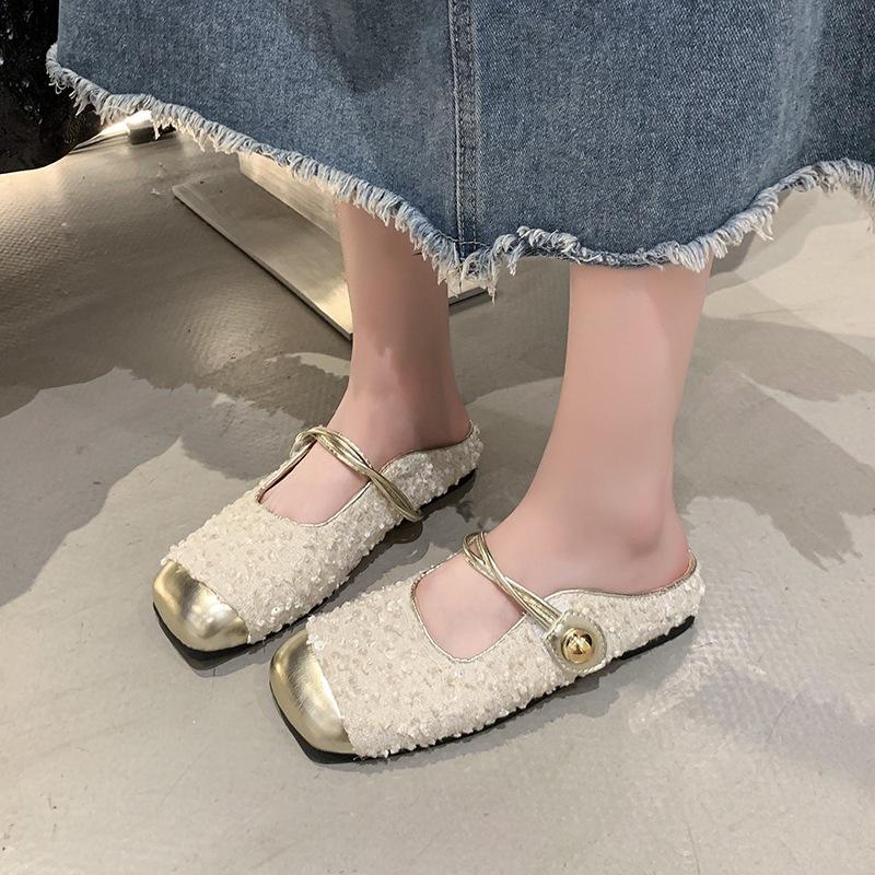 Fransk väska huvud Mary Jane coola tofflor dam ytterkläder 2025 sommar ny paljett temperament med kjol halva tofflor
