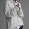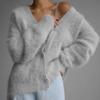 2025 Höst/Vinter Dam Lös V-ringad Stickad Minkkofta - Enfärgad