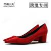 Sexiga spetsiga tjocka klackar bekväma klackar högklackade mocka svarta enkelskor kvinnor