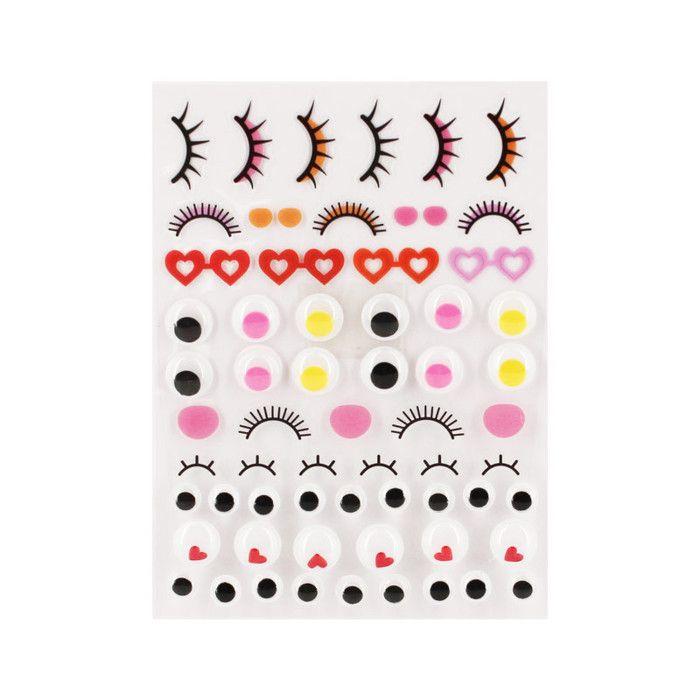 Stickers 3D - Yeux mobiles - Sourire - Sourcils - Pour personnage - 64 pièces