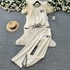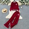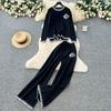 Höst Vinter Dam Casual Stickad Tröja Byxa Tvådelat Set Helärmad Pullover Toppar och Vida Ben Byxor Träningsoverall