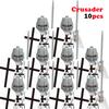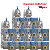 10 st MOC Medeltida Slott Riddare Rom Soldater Byggklossar Militär Forntida Egypten Mumiefigurer Krigare Vakt Vapen Kloss