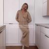 2024 Höst Enfärgad V-ringad Stickad Topp & Kroppsnära Midikjol Set