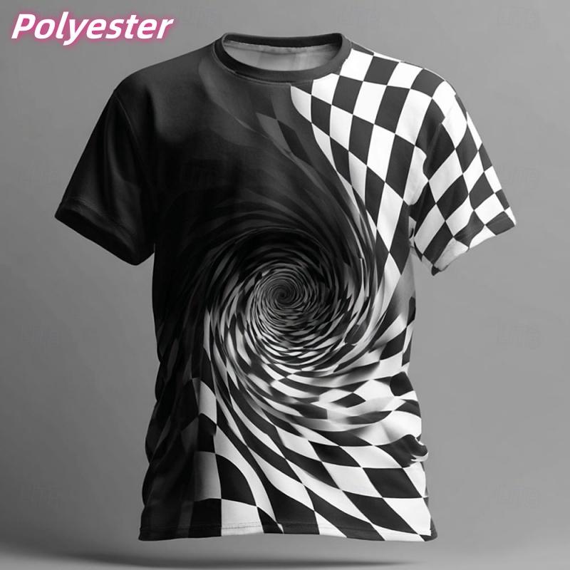 3d Printed Grid Vortex T-shirt Men's Cool Colorful Pattern T-shirt Summer Fashion T-shirt Casual Street Loose O-neck Top