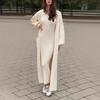 2025 Höst Damstickad Långklänning med Fickor och Midjeinsnörande Rundhalsad Kofta.