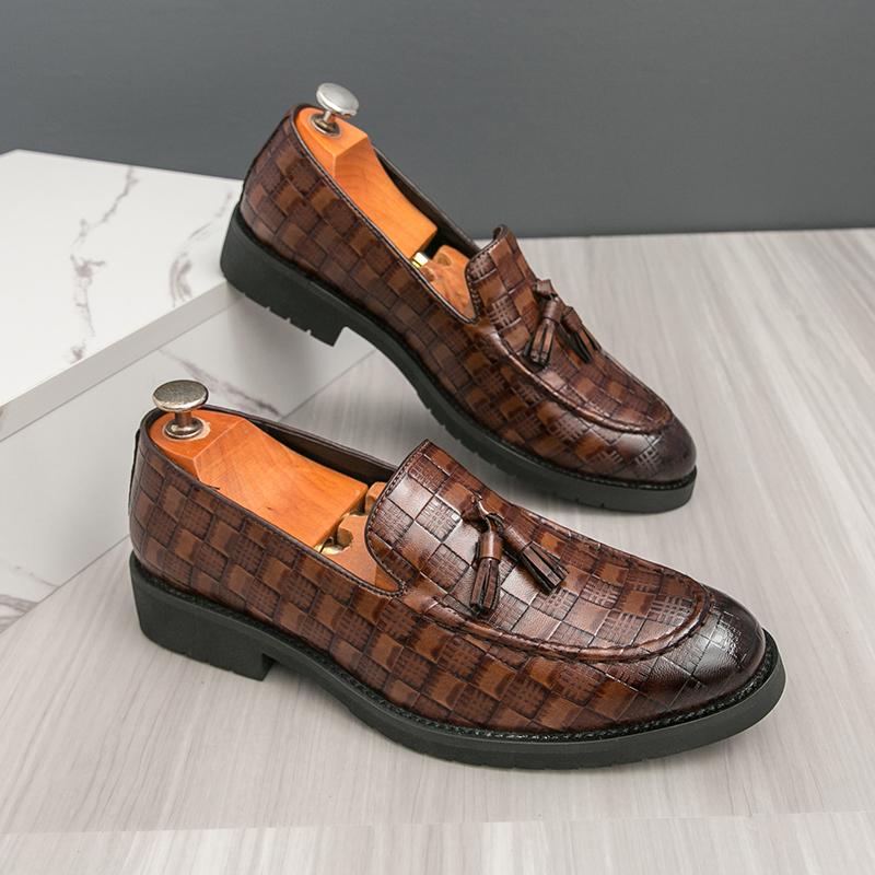 Herr Svart Loafers Läder Brun Formella Affärsskor Bröllopsklädsel Balskor Överdimensionerade
