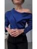 2025 Europeisk & Amerikansk Mode Off-Shoulder Hög Hals Enfärgad Dam Skjorta