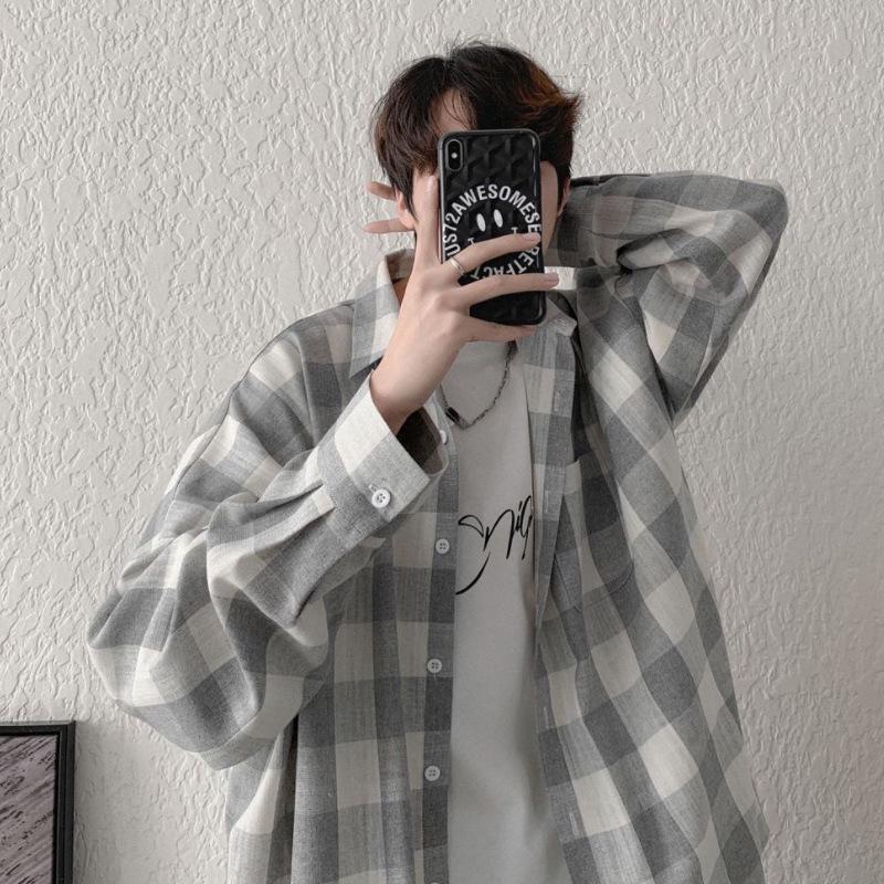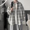 Herrskjorta i rutigt mönster i koreansk stil, Vår 2021 - Tonåring Långärmad, Lös passform, Trendig jacka