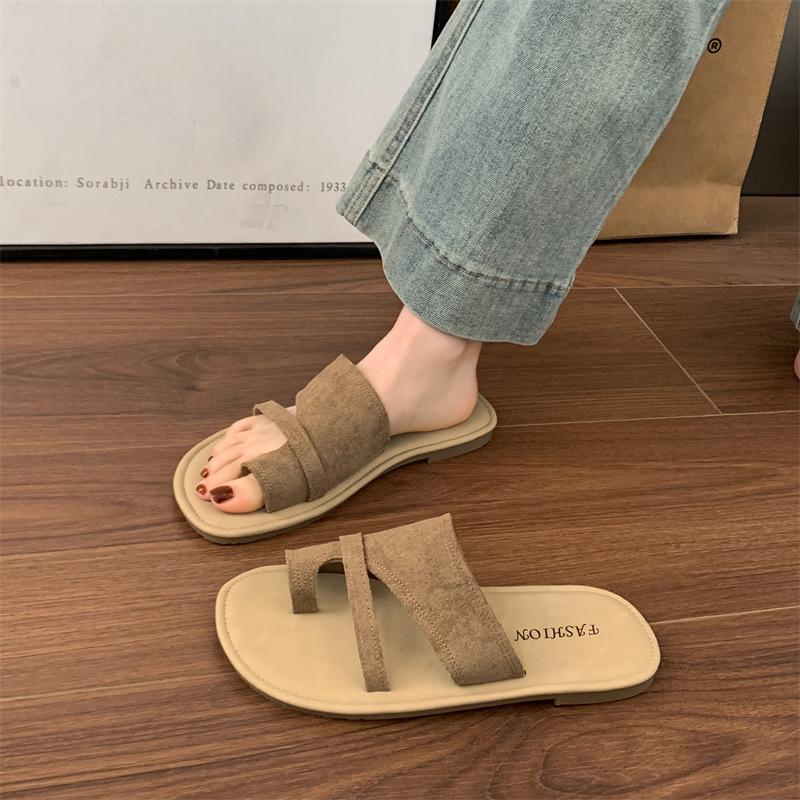 2025 summer new Korean retro toe slippers women's wear niche flat-bottomed soft-soled beach sandals