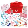 Läkare Leksaker för Barn Set Barn Trä Låtsasleksats Spel för Flickor Pojkar Röd Medicinsk Tandläkare Medicinlåda Tygpåsar