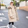 Barns mellanlång dunjacka för flickor Tjock vit ankdun i koreansk stil varm studentkappa