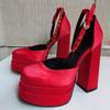 Stora Storlekar 46 Design Hög Kvalitet Äkta Siden Fårskinn Damer Platåpumps Nya Sexiga Rosaröda Högklackade Skor Dam