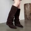 Cowhide version~ Retro pointed inner height-increasing knight boots for women's 2025 autumn and winter new versatile and thin pleated piled boots