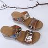 2025 European and American new foreign trade large-size women's sandals thick-soled wedge heel snake pattern sandals large-size women's shoes are i