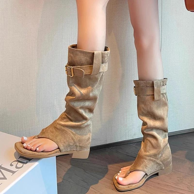 Summer Internal Elevation Women Knee High Boots Retro Style Clip Toe Shoes Ladies Causal Slip On Sandalias Booties