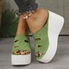 Foreign trade large size women's summer wedge heel sandals women's 2025 new foreign trade sequins thick-soled wedge heel
