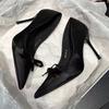 Women's Fashion Slim Heel Shoes Spring New Pointed Head Shallow Mouth Butterfly Knot Anti-slip Wear-resistant High Heels