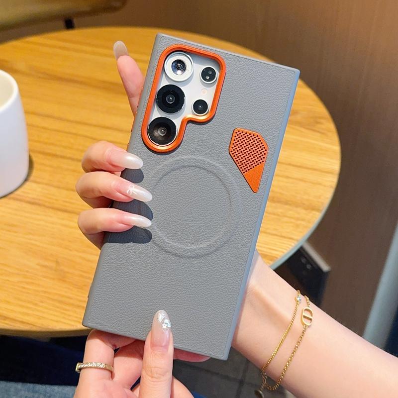 Stylish Magnetic Case for Samsung Galaxy S24/S25 Ultra S24+/S25+/S25Edge Casual Korean Vegan Leather Cover with Heat Dissipation