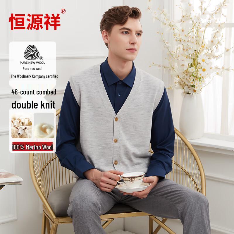 Hengyuanxiang Men's Pure Wool Button Vest Cardigan