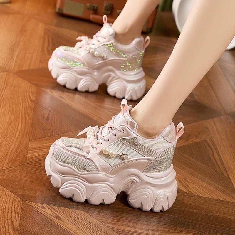 Thick-soled inner height increase dad shoes women's 2025 spring new rhinestone breathable single shoes small versatile casual women's shoes