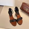 Retro koreansk version enkel design mode internetkändis sandaler kvinnor öppen tå temperament utländsk stil bekväma lågklackade dragkedja romerska s