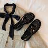 Small gold coins thick-soled thick-heeled loafers women's British style retro one-pedal small leather shoes lazy single shoes