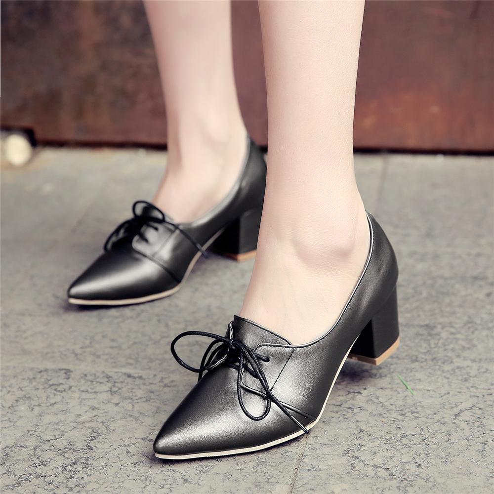 Fashion 2025 HOT Women Shoes Pointed Toe Pumps Leather Lace-up Female Square High Heels Zapatos Mujer Plus Size 31-45 Black White Pink