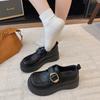 Brittisk stil små läderskor dam sommar 2025 nya muffin tjocksulade runda tå mångsidiga kardborreband svarta loafers