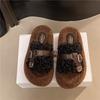 Fluffiga tofflor med tjock sula för dam ytterkläder 2025 höst ny mode bältesspänne lata vardagliga teddy lockiga tofflor