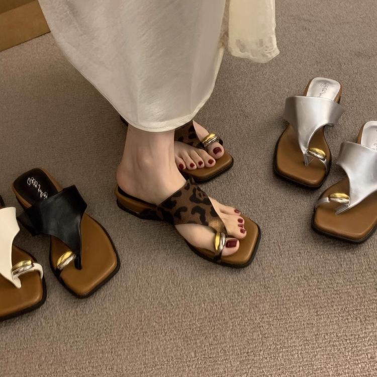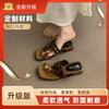 French retro metal buckle cover toe sandals women's 2025 new niche thick-soled one-pedal beach shoes summer wear