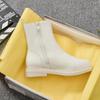 Korta stövlar dam 2025 nya Martin-stövlar dam höst och vinter Chelsea enkelstövlar vita med dragkedja bak vita tunna stövlar