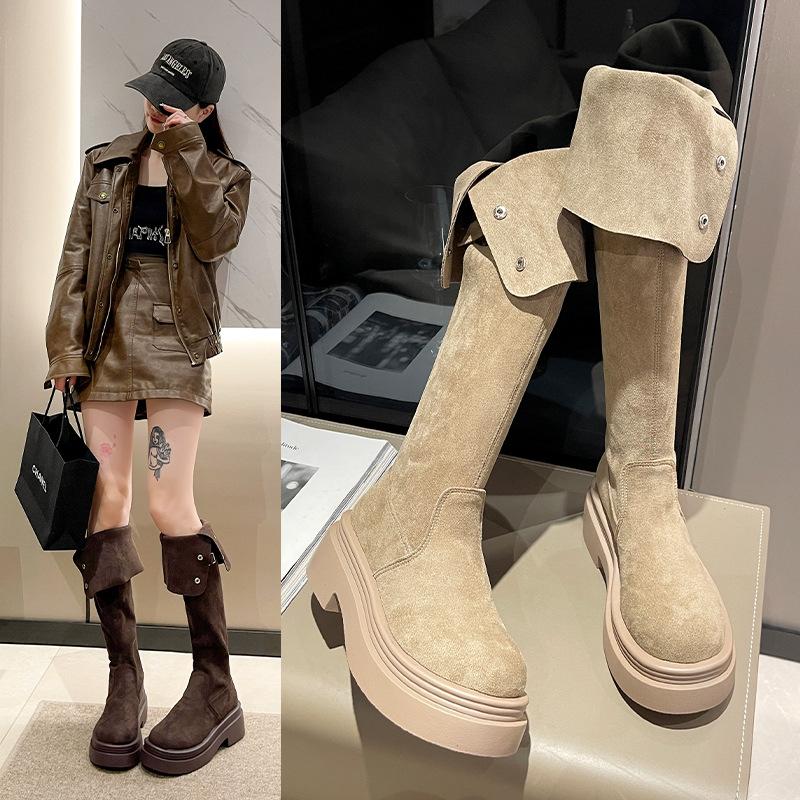 Skinny knight boots two wear thick-soled knee boots new boots folded small tall autumn and winter women
