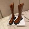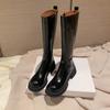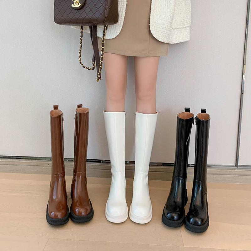 Raised thick-soled but knee-high boots for women's 2025 autumn new round-headed knight boots muffin-bottom high boots