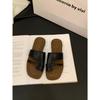 Niche flat-bottomed retro cover toe cool slippers women's shoes summer wear 2025 new summer soft-soled beach sandals