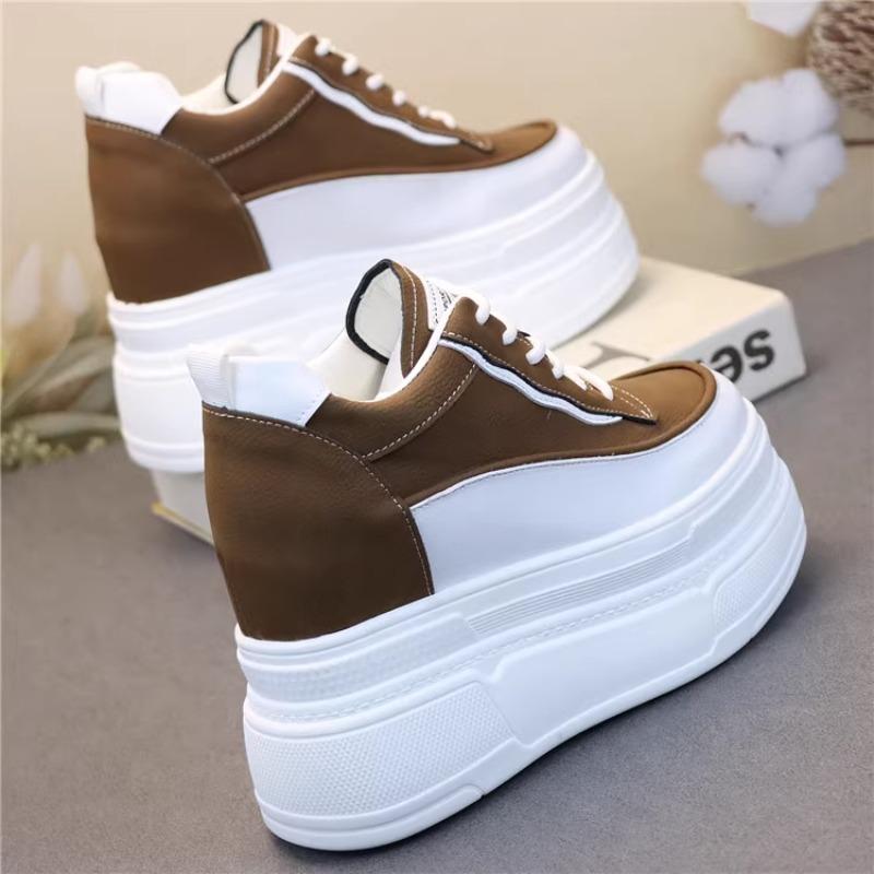Mode 12CM Syntetiskt Äkta Läder Vit Lyxig Designer Sneaker Dam Höst Vår Cowboy Platå Kil Höga Märkesskor