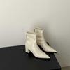 Ny produkt~ 2025 höst och vinter nya spetsiga tjockklackade mjuka läder tunna stövlar bakre dragkedja Martin-kängor dam korta stövlar mellanhög klack