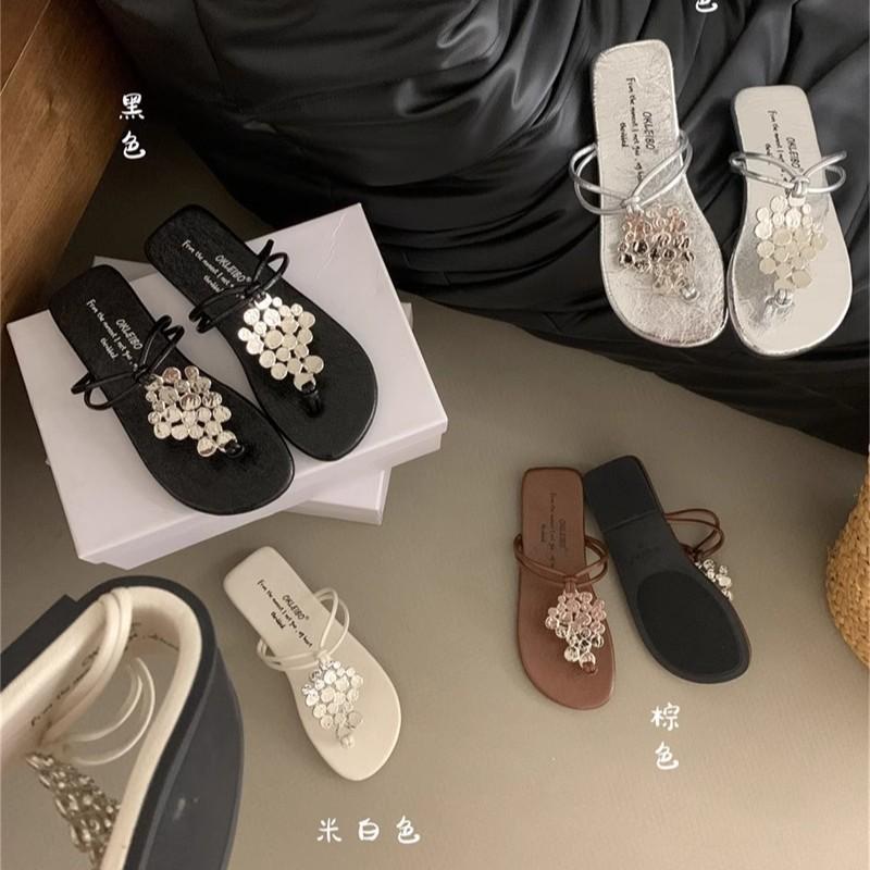 Romanska coola tofflor dam 2025 sommar Internetkändis kläm-sandaler dam semester fritid strand flip-flops dam