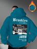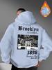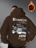 Fashionable men's autumn gothic letter retro landscape print micro elastic comfortable hooded sweatshirt outdoor street style to