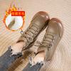 Winter new leather wool Martin boots casual versatile thickened velvet non-slip flat cotton shoes women's short boots