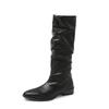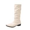 Stövel med tjock klack, plisserad skaft, långt skaft, riddarstövlar, damskor, nya vår- och höststövlar i västerländsk stil, smala, medelhögt skaft, långa stövlar