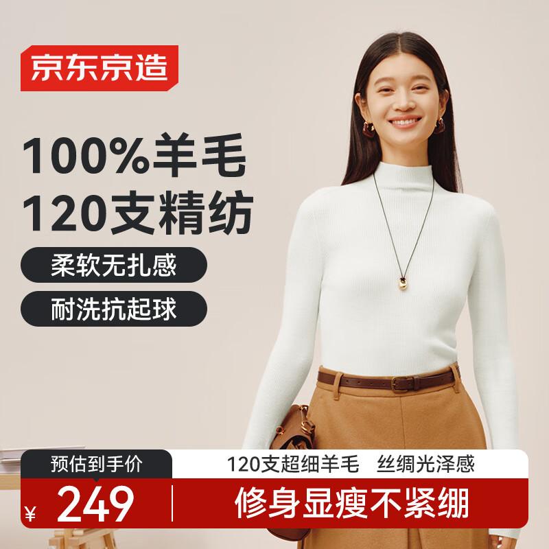 Jingdong Crafted Women's 100% Wool High-Neck Pullover Sweater