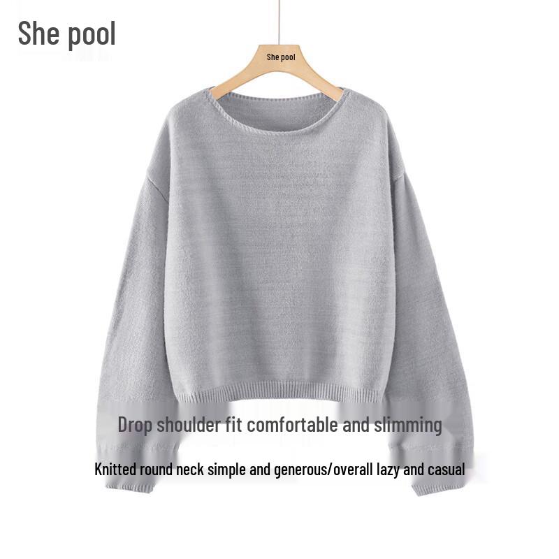 She Pool Women's 2025 Autumn Lantern Sleeve Round Neck Short Sweater