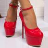 Comemore Women Sexy Super High Heels Belt Buckle Pumps Round Toe Shallow Mouth Patent Leather Platform Nightclub Heels Women