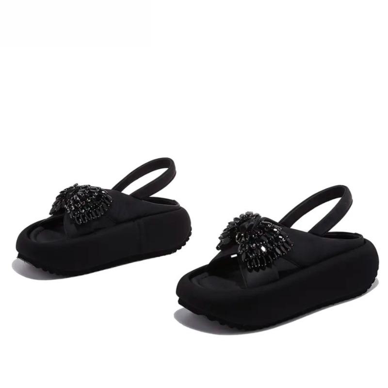 Kristallbåge Plattformssandaler Sommar Ny Rund Tå Öppen Tå En Rem Halkfria Slitstarka Kilsandaler