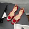 Liten man ökar längden med 4 cm, metallfyrkantsspänne ihåliga sandaler dam 2025 nya franska enpedals rundhuvudda enkelsskor