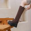Long boots women's 2025 autumn and winter new thick-soled thick-heeled fashion boots Korean version suede elastic thin boots thick-soled 14cm