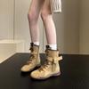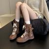 Vintage mjuka läderboxningsstövlar dam höst 2025 nya brittisk stil Martin-stövlar Maillard platå medelhöga stövlar