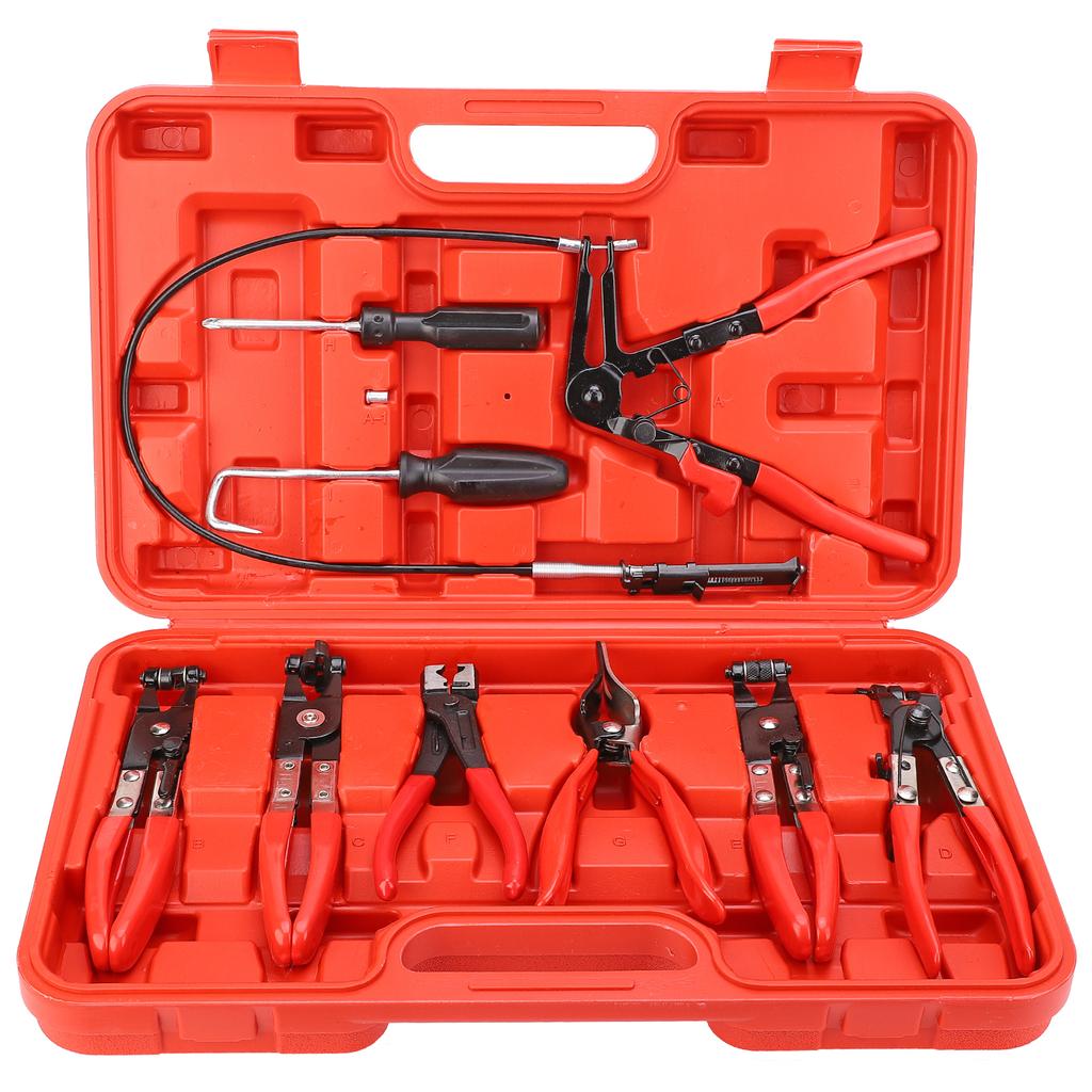 9pcs Flexible Hose Clamp Clip Plier Set Safe Durable Clamp with Swivel Jaw Flat Angled Band for Automotive Repair Tools