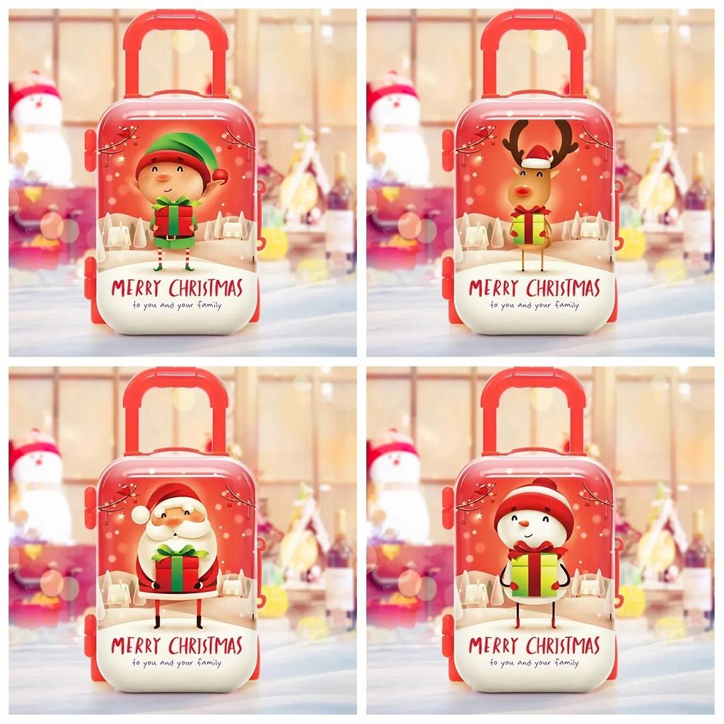 Festlig julgodislåda resväska med jultomte snögubbe älg alv design för dockhus tema dekoration
